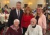 Phillies pitcher Cristopher Sanchez met with car dealer Gary Barbera and the Barbera Bear after leading the team to a victory on opening day.