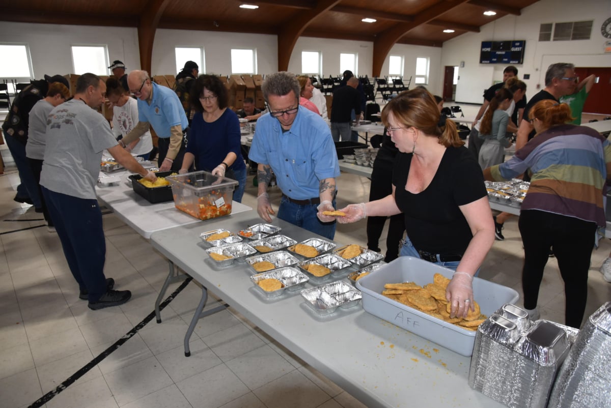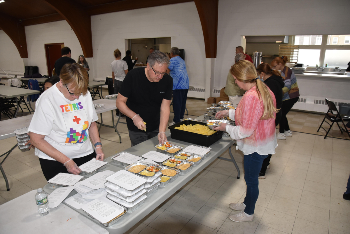 Dozens of volunteers for the nonprofit Gift of Giving, formerly known as Angels of Christmas, gathered recently at St. Dominic’s Marian Hall to prepare 3,024 meals for Caring for Friends.