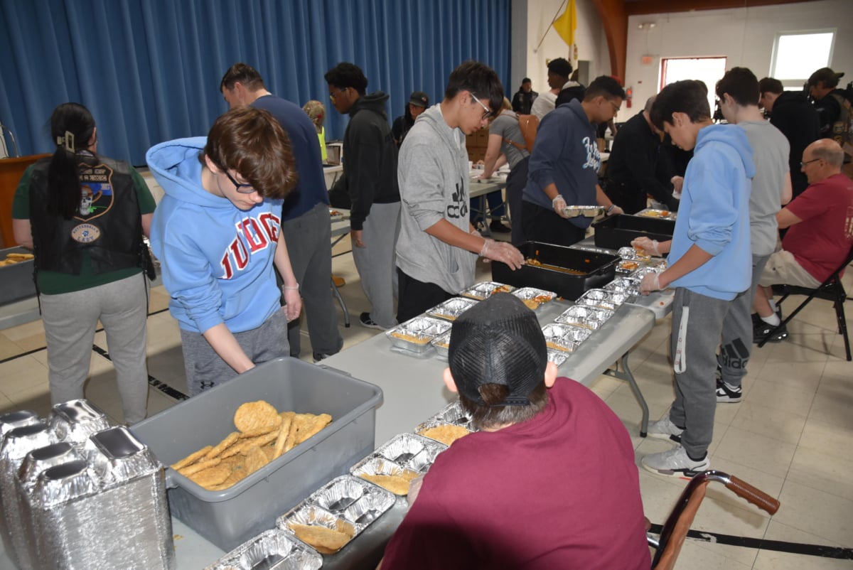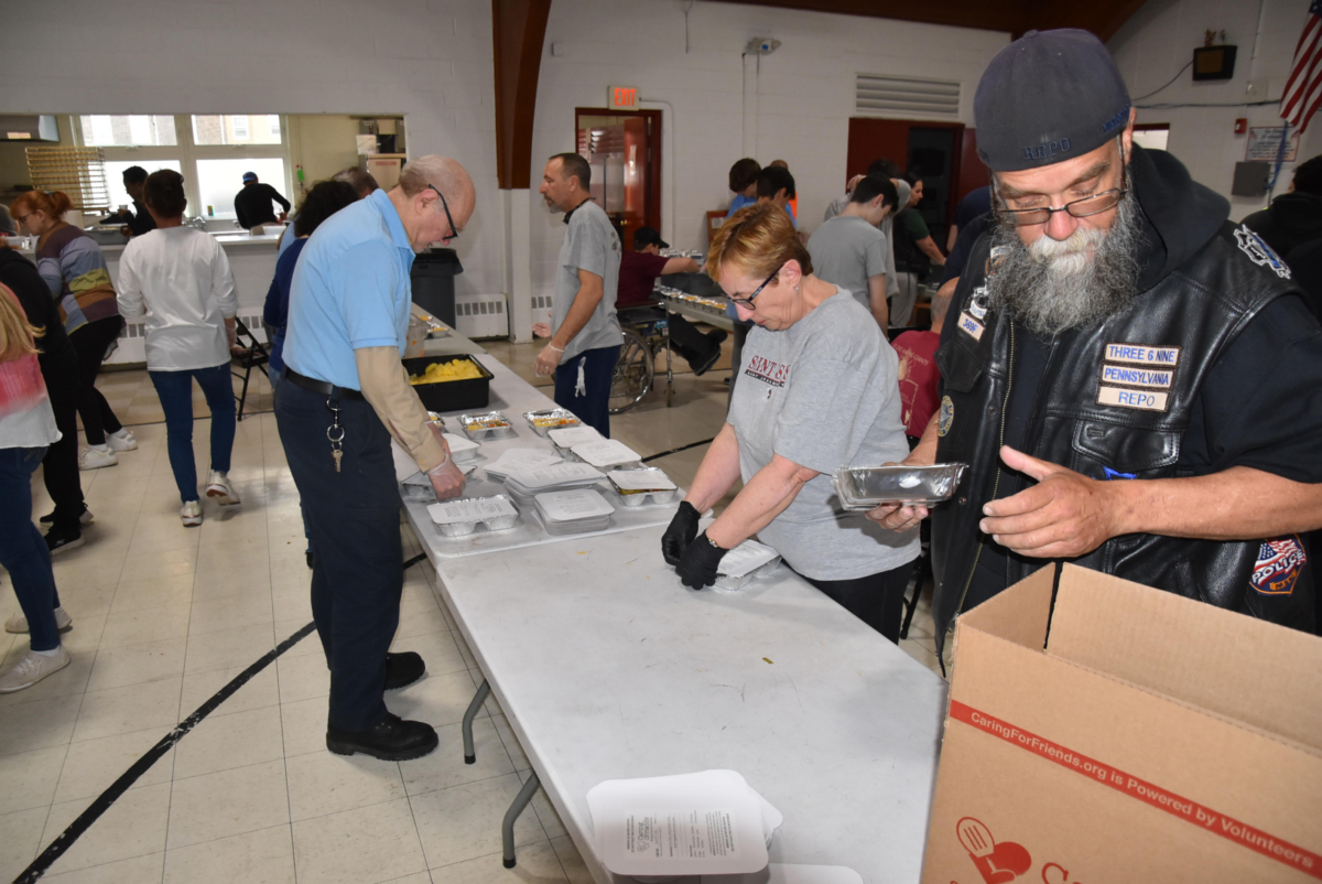 Volunteers included members of the Three 6 Nine Law Enforcement Motorcycle Club and some freshmen from Father Judge.