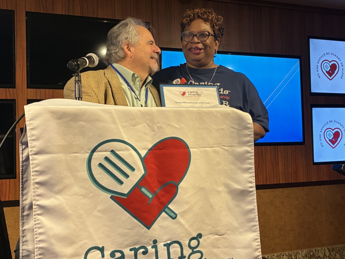 Caring for Friends was founded by Rita Ungaro Schiavone in 1974 as Aid for Friends. The motto is, “No one should be hungry or alone,” with a heart logo.