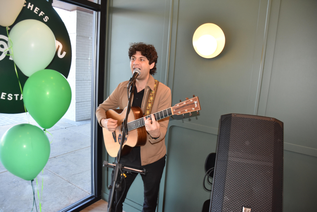 State Rep. Sean Dougherty was among those at the grand opening, which featured live music and giveaways of hats, bags and mints.