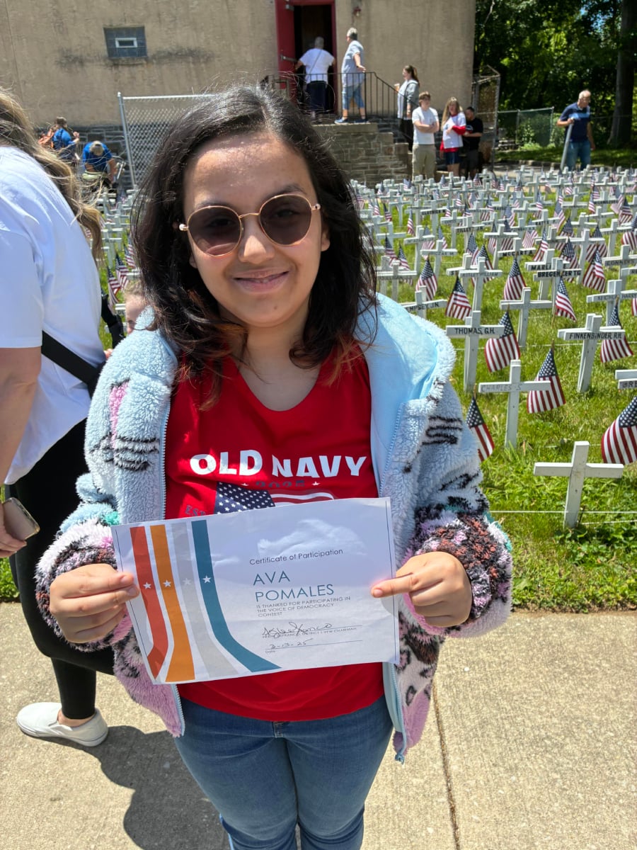 Ava Pomales, a junior at Little Flower, was recognized for her participation in the Voice of Democracy contest.