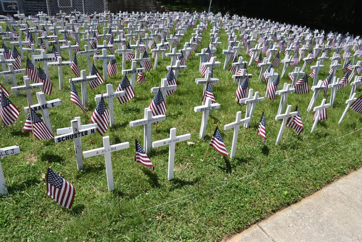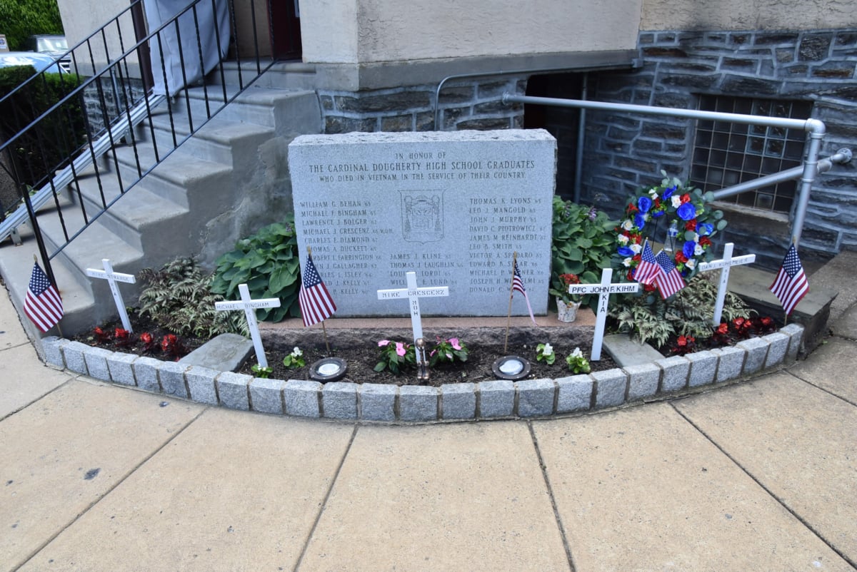 The lawn was covered with hundreds of crosses and American flags in memory of Post 2819 members who have died. A wreath was placed at the memorial honoring the 27 Dougherty graduates killed in Vietnam. ••