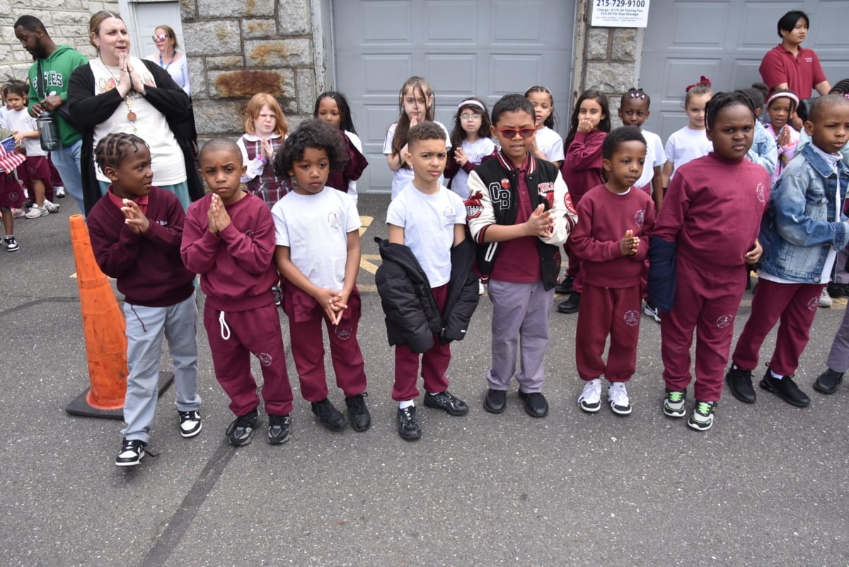 Students in kindergarten through eighth grade walked along Loretto Avenue, Cheltenham Avenue, Roosevelt Boulevard and Sanger Street. ••