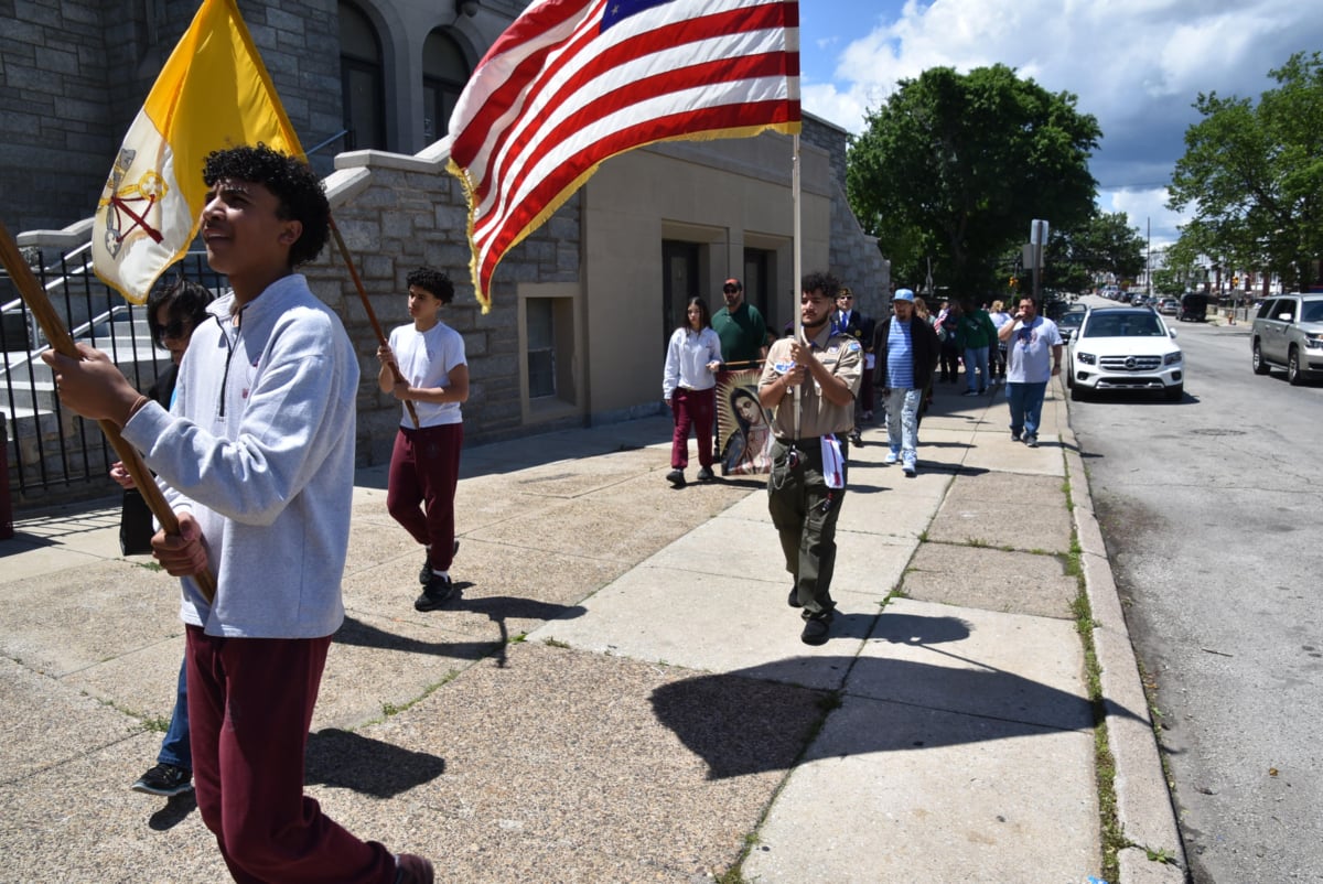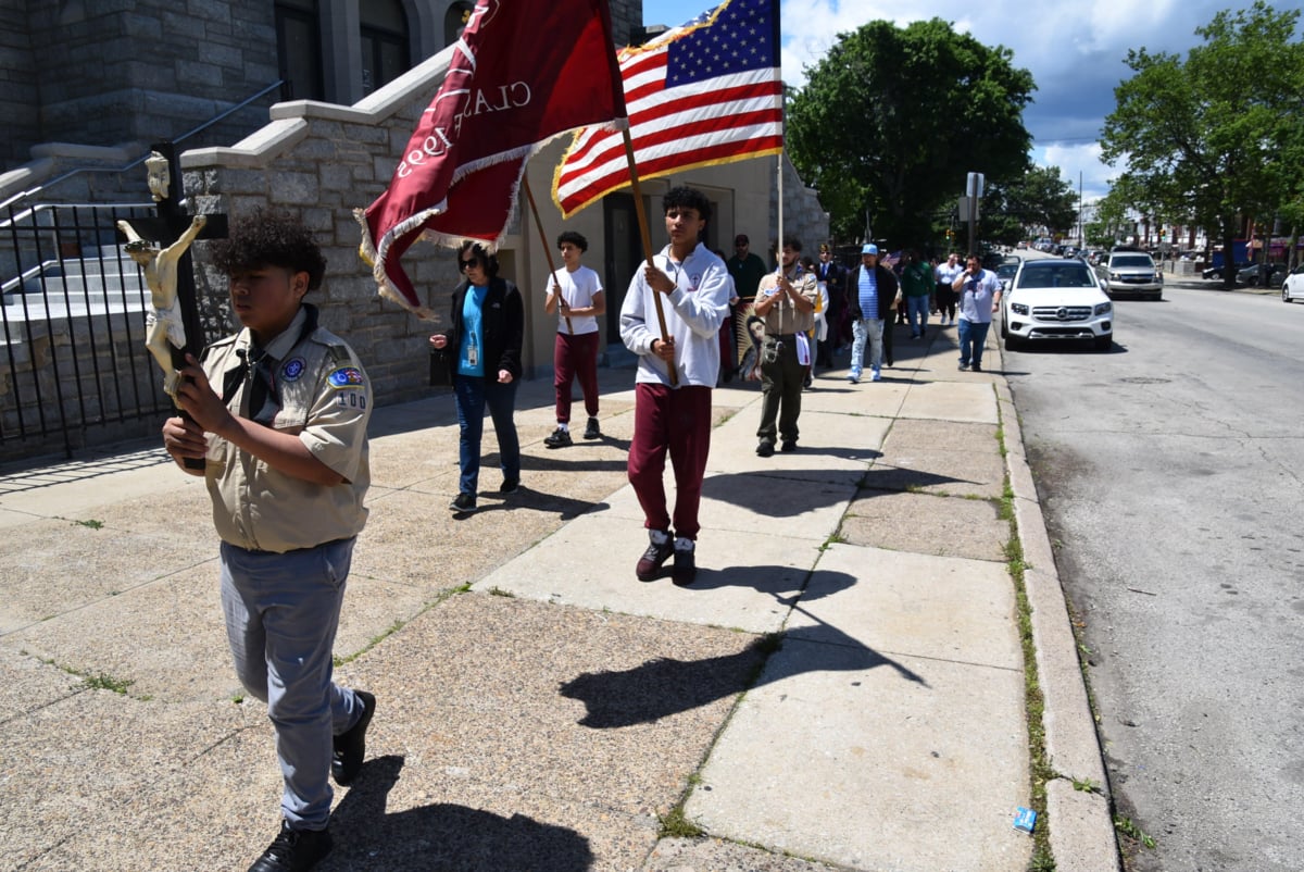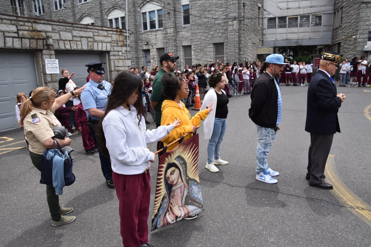 In the afternoon, there was a ceremony in the schoolyard, followed by another walk around the parish perimeter. The school community was joined by representatives of the police department, American Legion Latin American Post 840 and Boys Scouts Troop 100.
