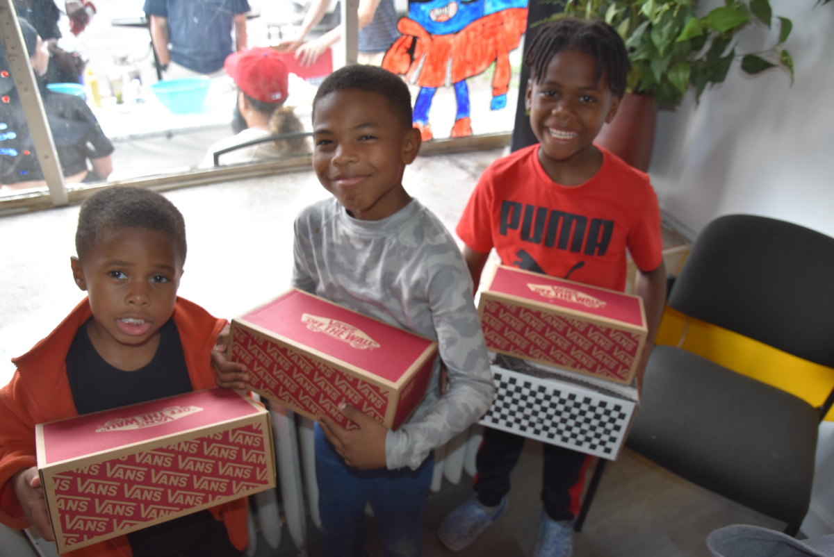 The day included free grilled hot dogs and cheeseburgers and giveaways of sneakers and shoes. ••