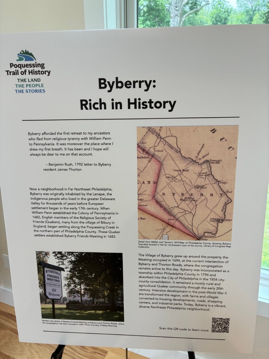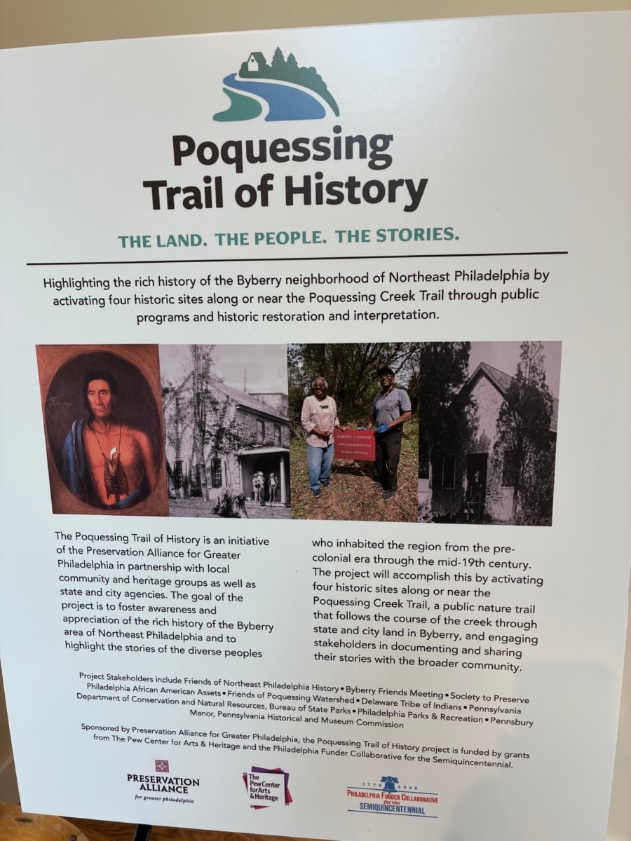 The Poquessing Trail of History recently had its coming-out party at Byberry Meeting, 3001 Byberry Road.