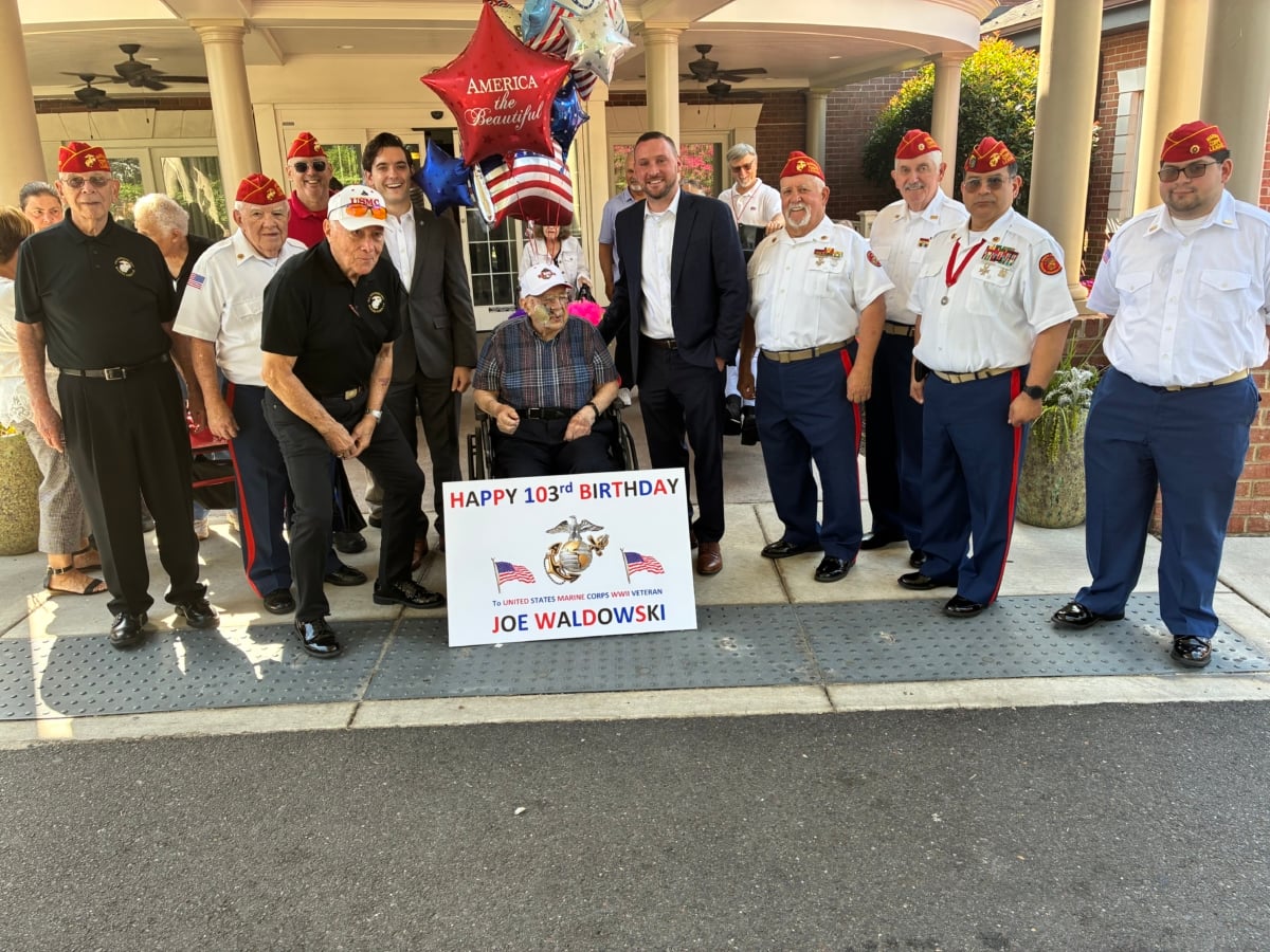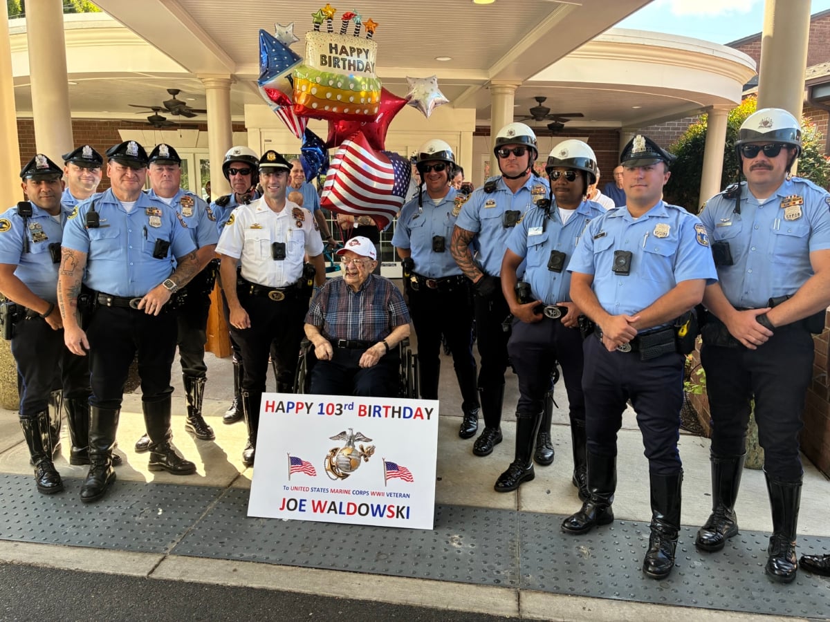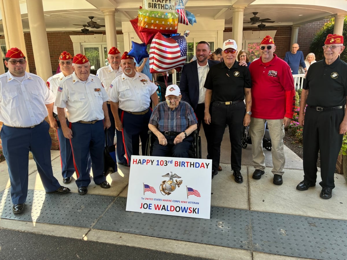 The Marine Corps League Detachment 281 All Divisions on Friday organized a celebration of Joe Waldowski’s 103rd birthday outside his residence at Paul’s Run, 9896 Bustleton Ave.
