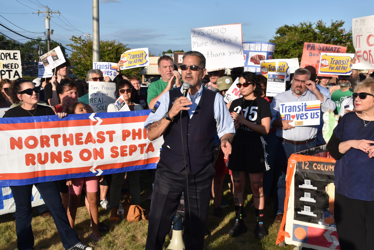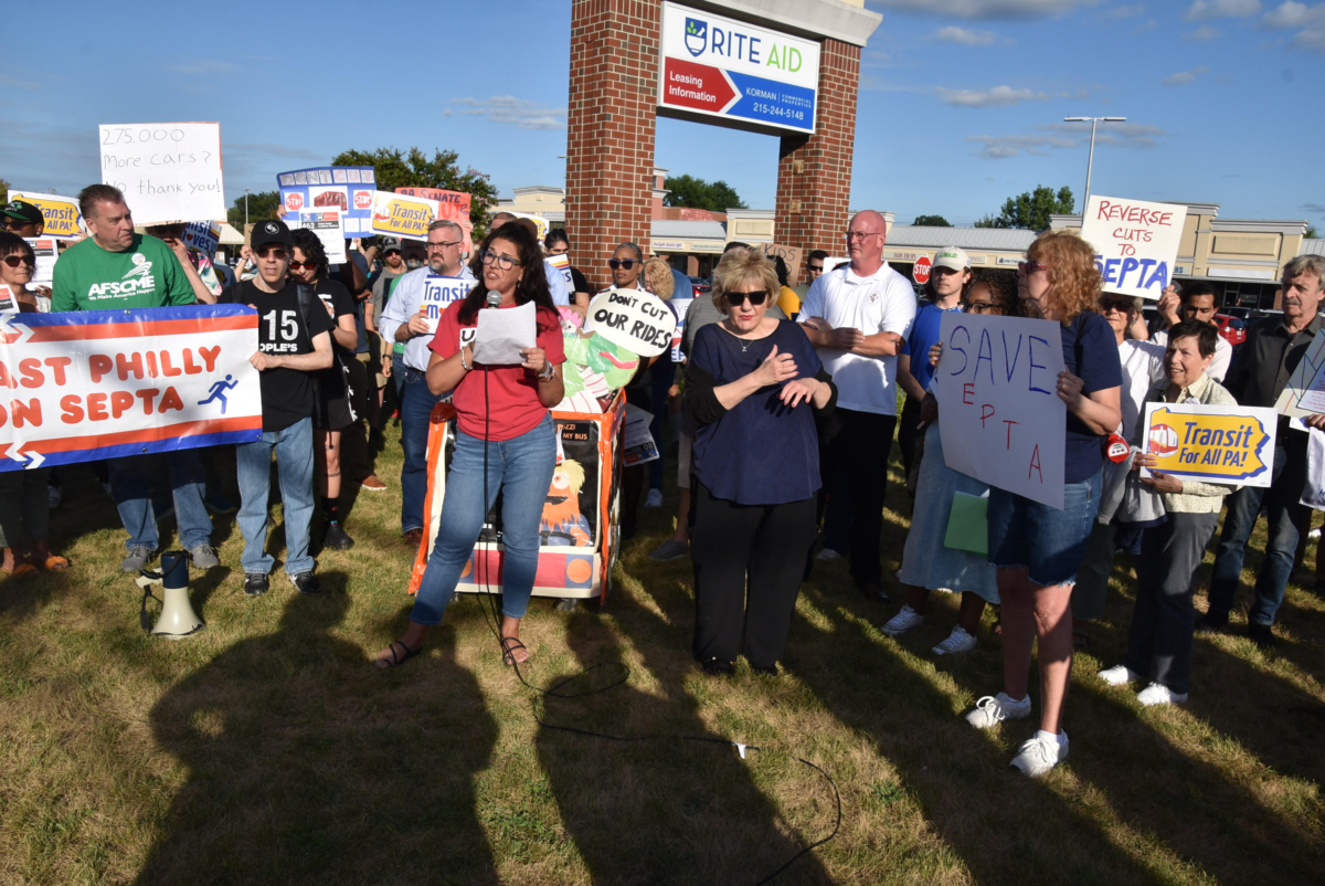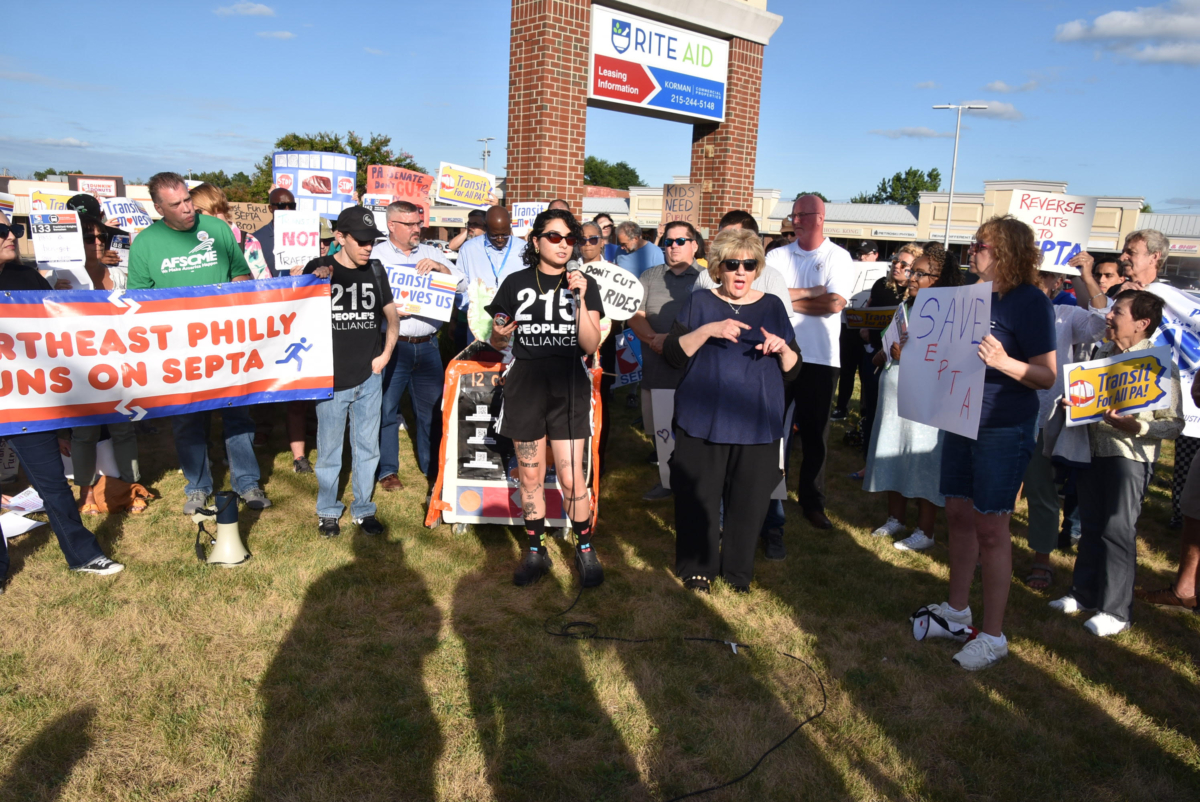 Meanwhile, on a patch of grass near the Wawa, Transit For All PA and Transit Forward Philadelphia led a rally demanding immediate funding for SEPTA.