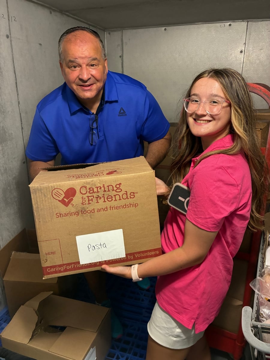 Regina’s dad, Art, also plays a big role in the effort. He buys the pasta, “gravy,” rice and vegetables and drives his daughter to drop off the meals at Caring for Friends, in exchange for her doing a few chores around the house.