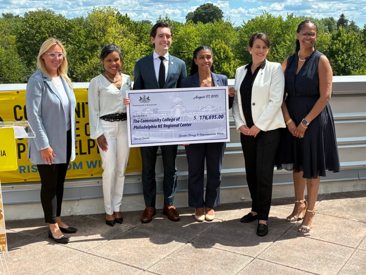 State Sen. Joe Picozzi and state Rep. Martina White last week were among those celebrating a Solar for Schools grant to Community College of Philadelphia Northeast Regional Center, 12901 Townsend Road.