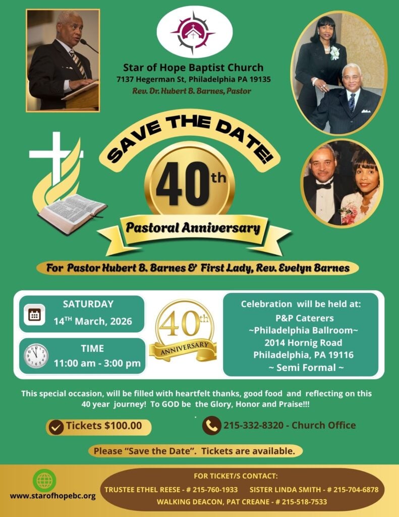 Religious Services Tacony Baptist Church, 4715 Disston St. Sunday School: 9:30 to 10 a.m. Worship service: 11 a.m.