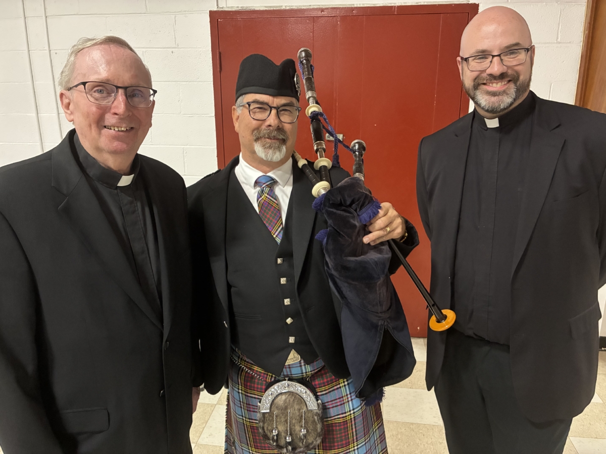 A reception for Connolly followed in Marian Hall. There was plenty of food and desserts, and bagpiper Gary Guth performed Too-Ra-Loo-Ra-Loo-Ral and other Irish songs. ••