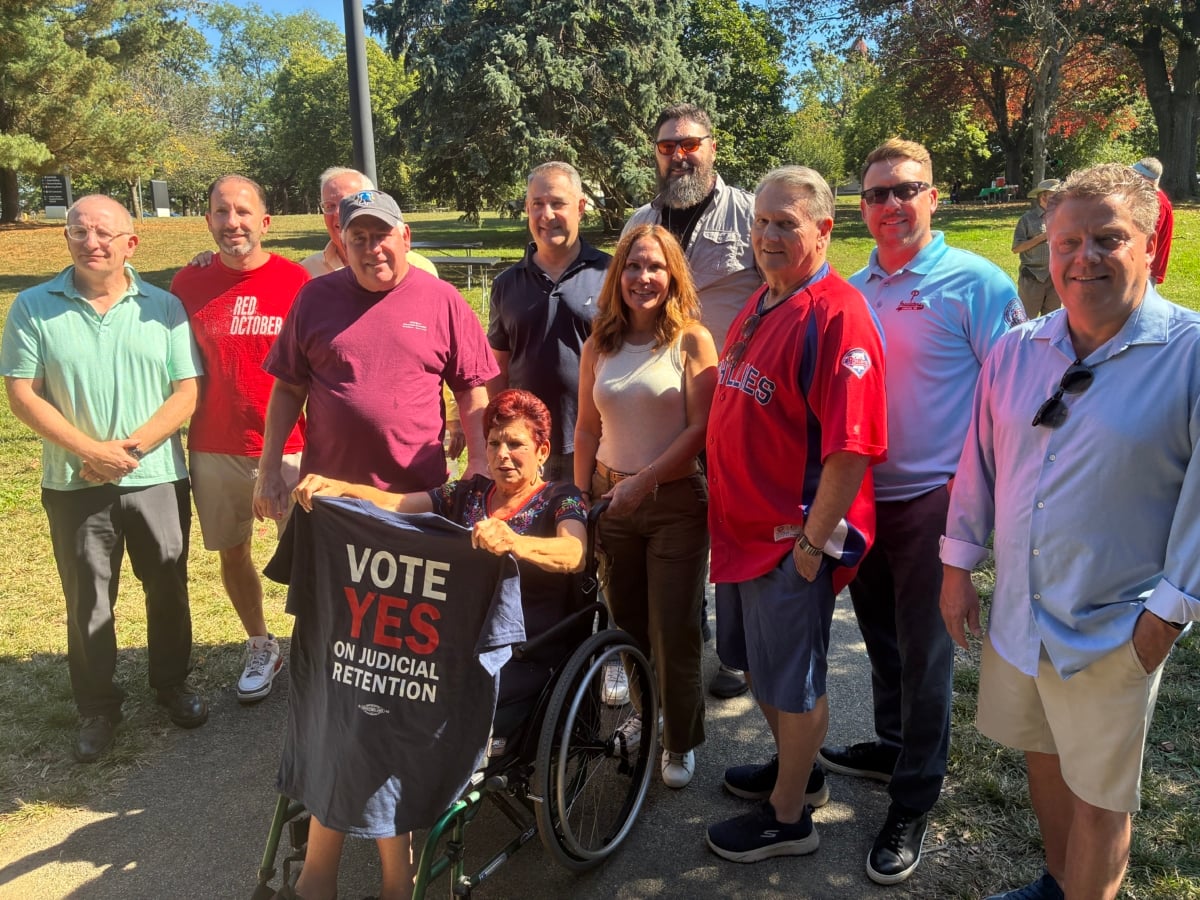 Tartaglione, a state senator, urged those in attendance to vote to retain the three Democratic state Supreme Court justices in the Nov. 4 election.