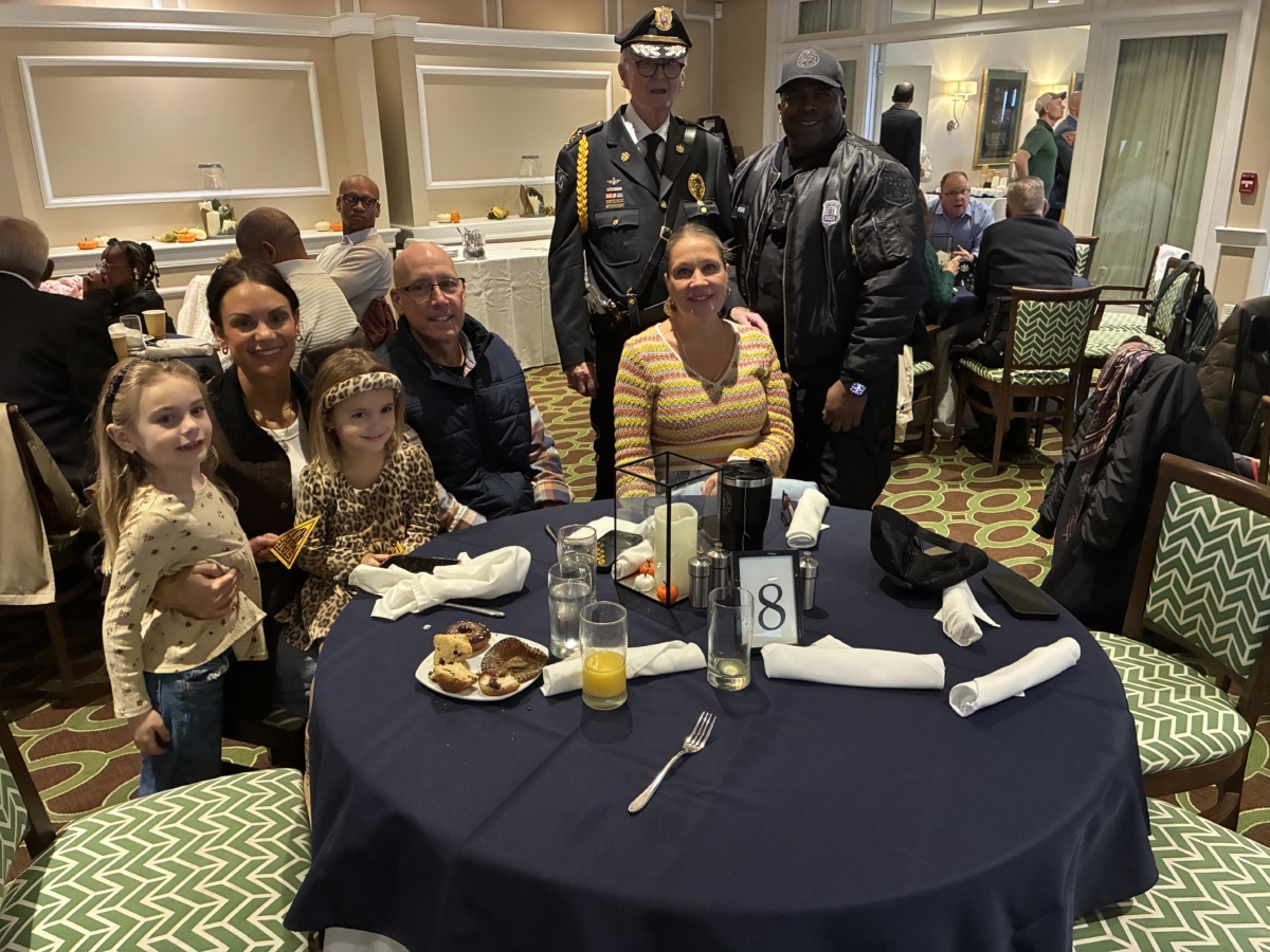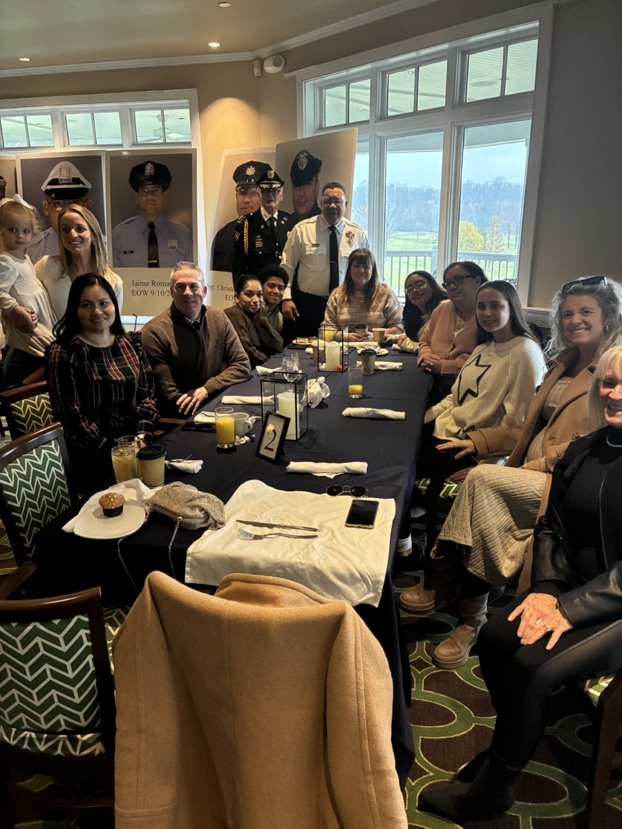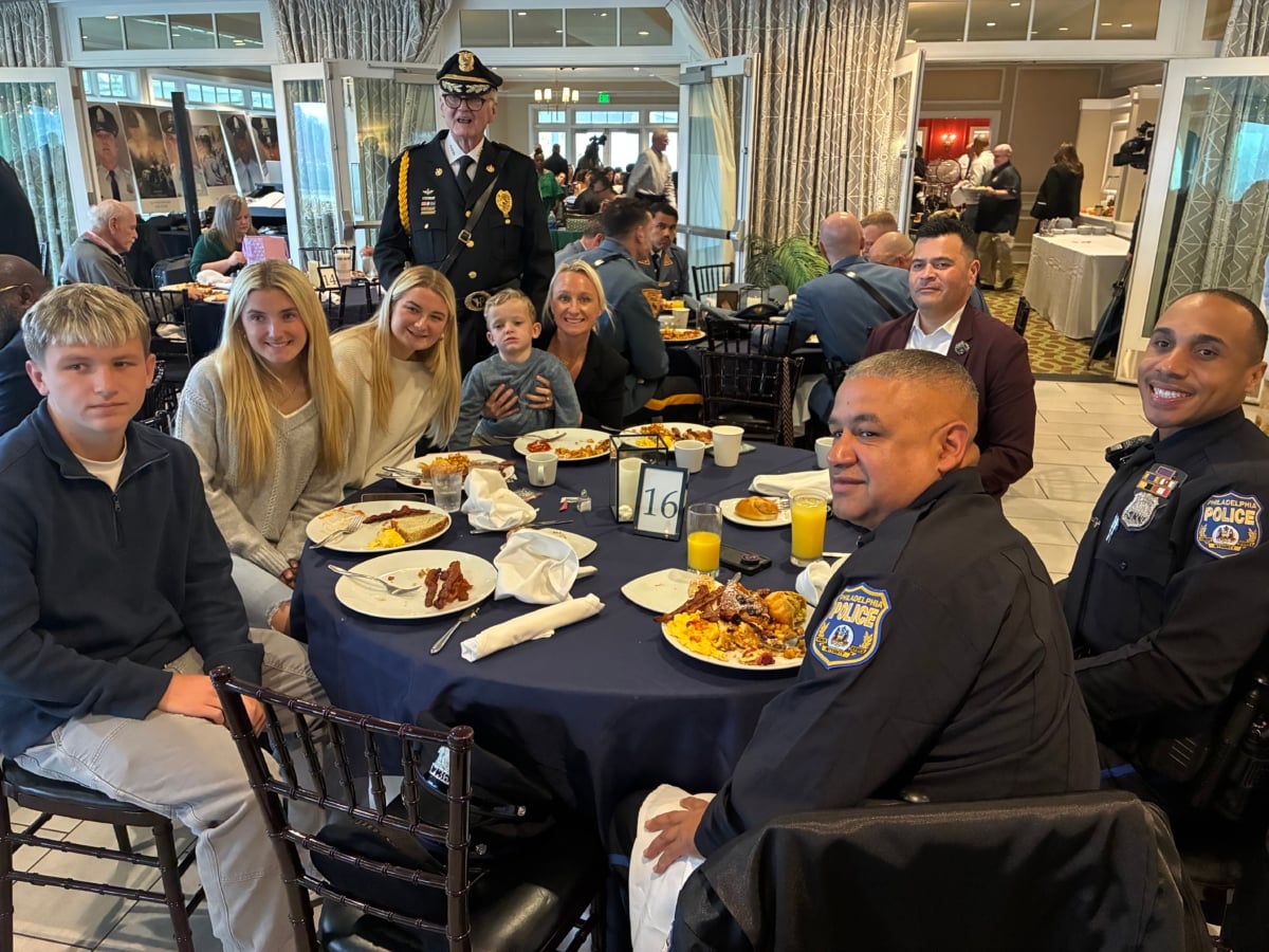 Jimmy Binns, president and CEO of Holiday Meals for Heroes, welcomed families of local police officers who died in the line of duty to a Thanksgiving eve breakfast at Sunnybrook Golf Club in Plymouth Meeting.