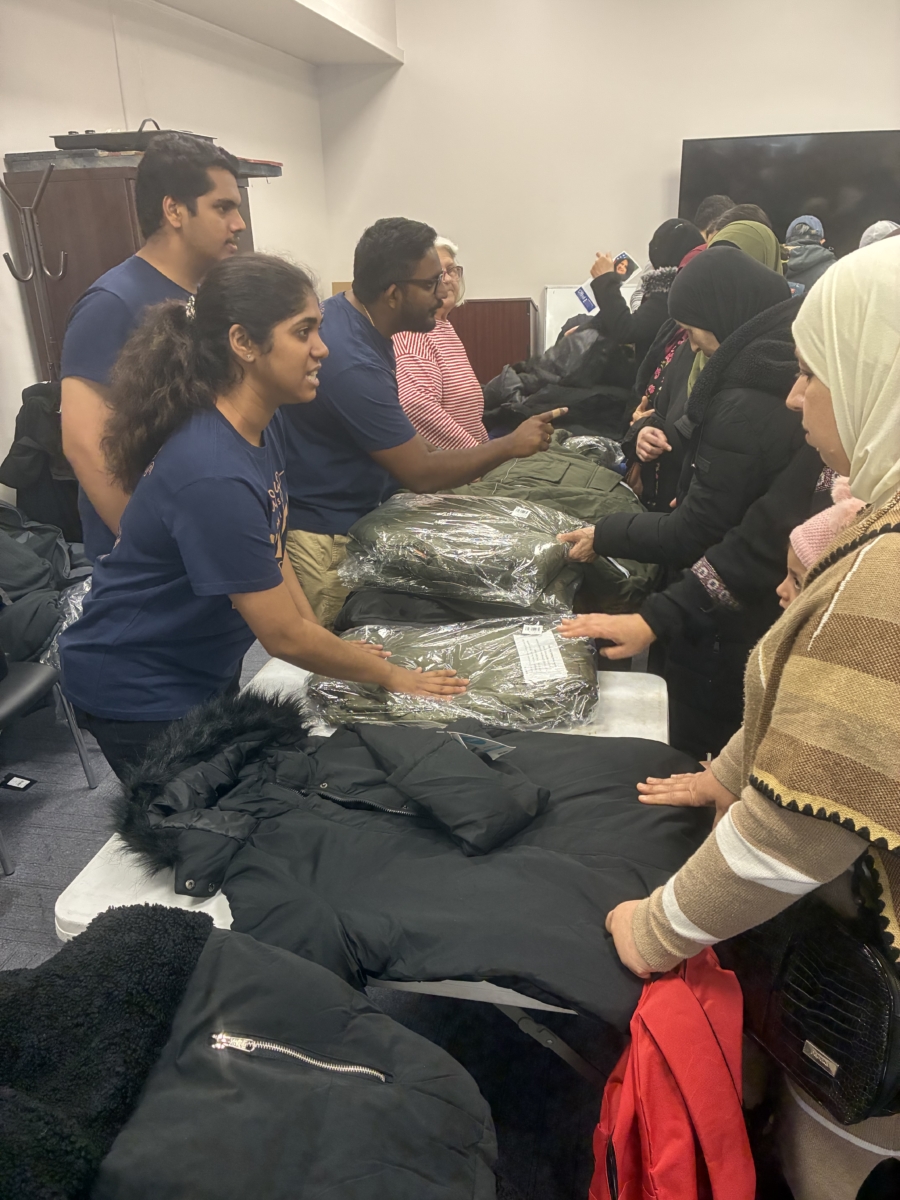 Items handed out were coats, gloves, hats, scarves, books and backpacks.