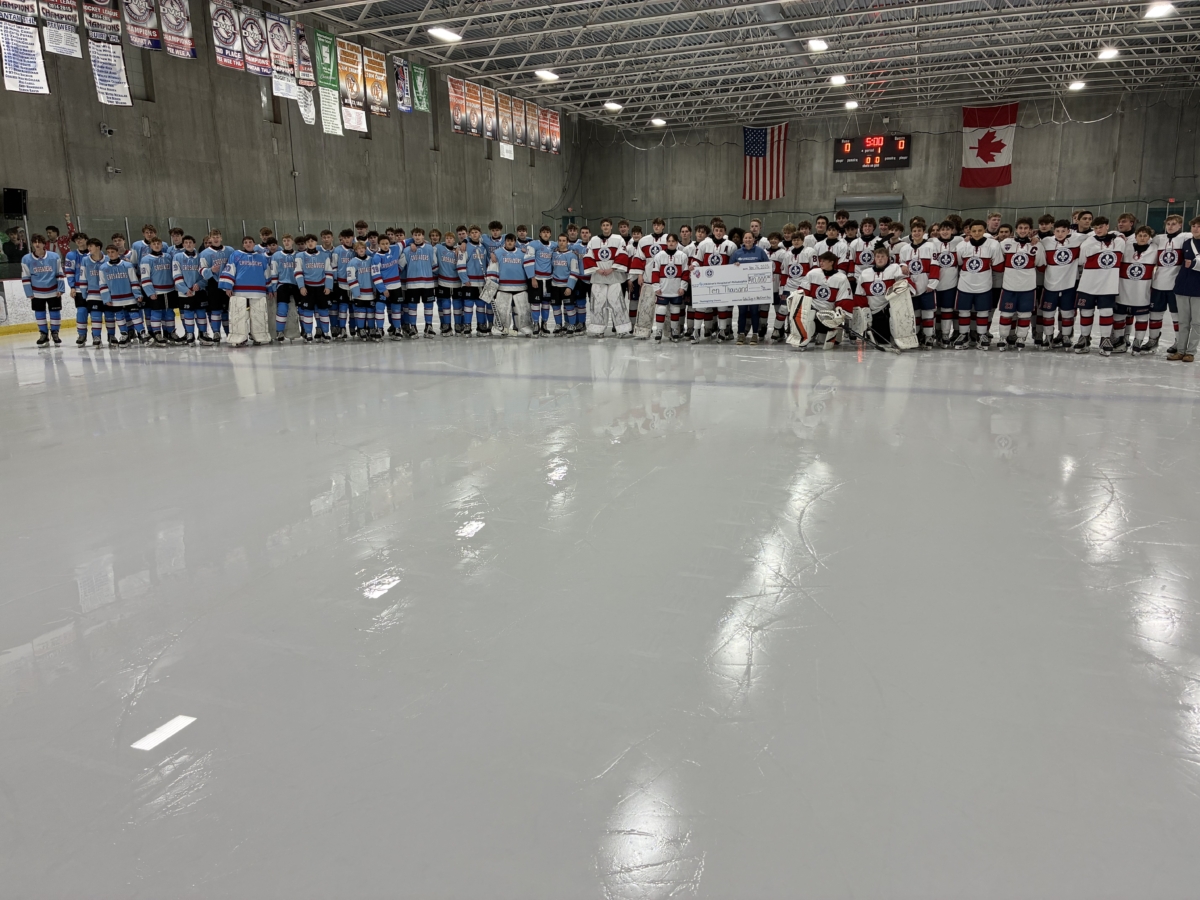 The Father Judge and Holy Ghost Prep JV and varsity hockey teams squared off in their annual Thanksgiving Classic at Grundy Arena in Bristol, making a big donation before games.