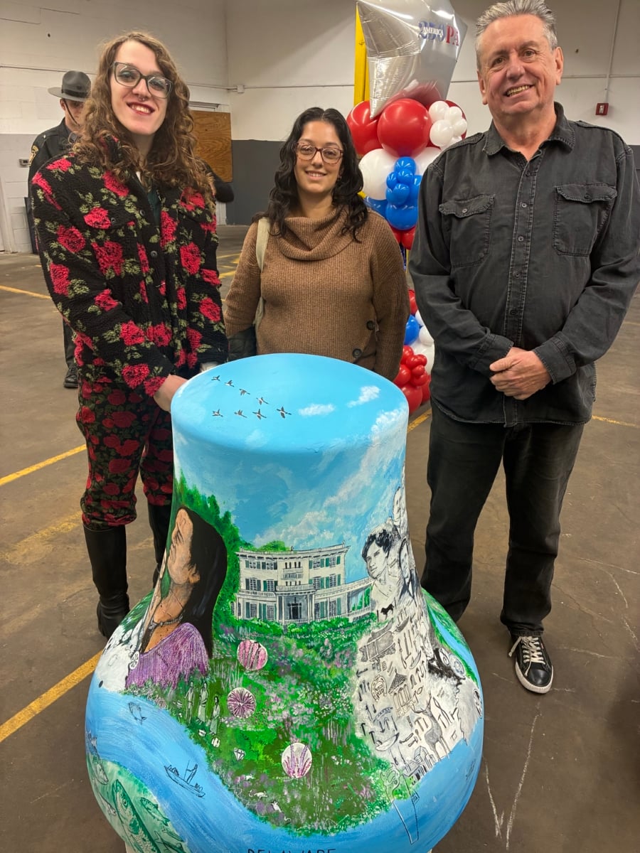 The Glen Foerd bell, Nature to Industry to Nature Again, was designed by Bob Dix. Joining him at the unveiling were Glen Foerd’s Tina Acuna, development and marketing manager, and April Foster, arts and culture coordinator.
