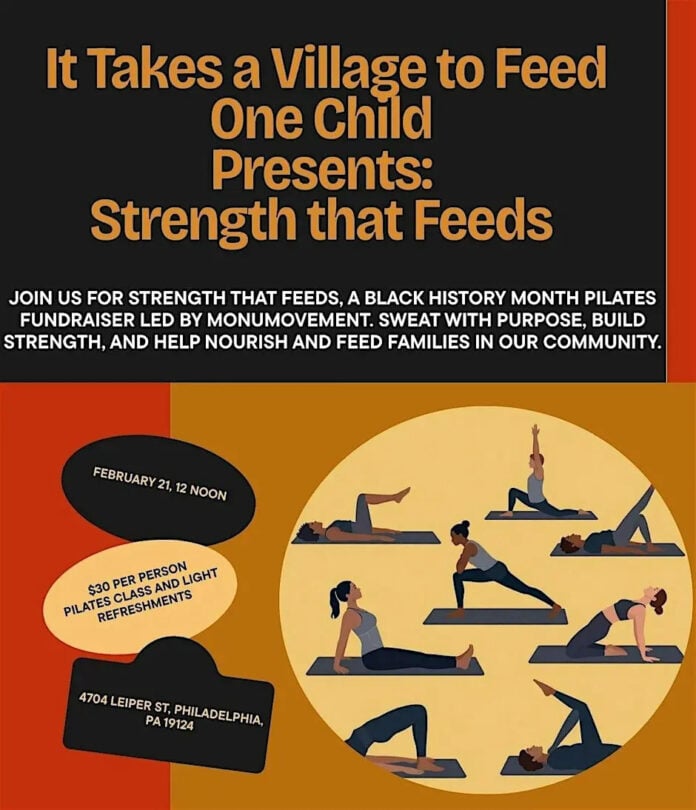 It Takes a Village to Feed One Child, a hunger relief nonprofit, will hold a pilates class fundraiser on Saturday, Feb. 21, from noon to 1 p.m., at Unique Dreams, 4704 Leiper St.