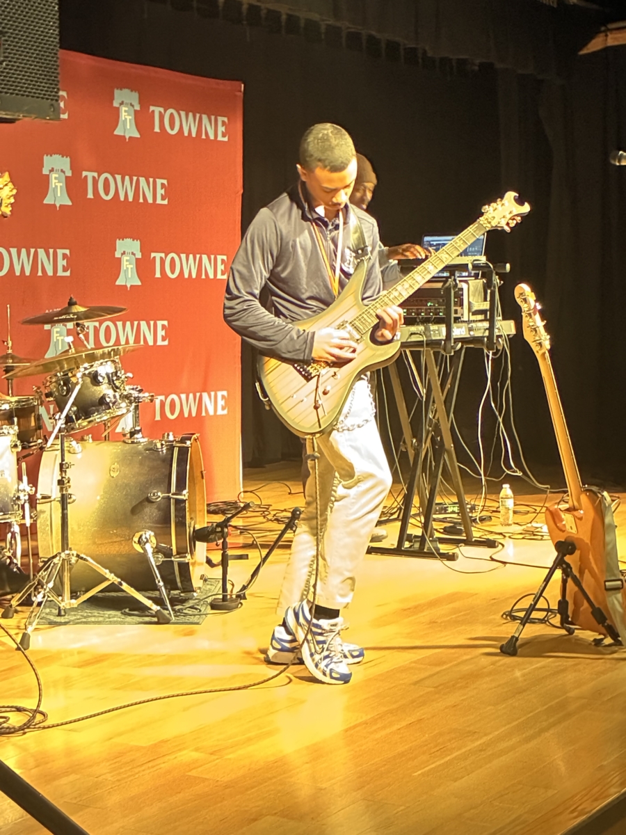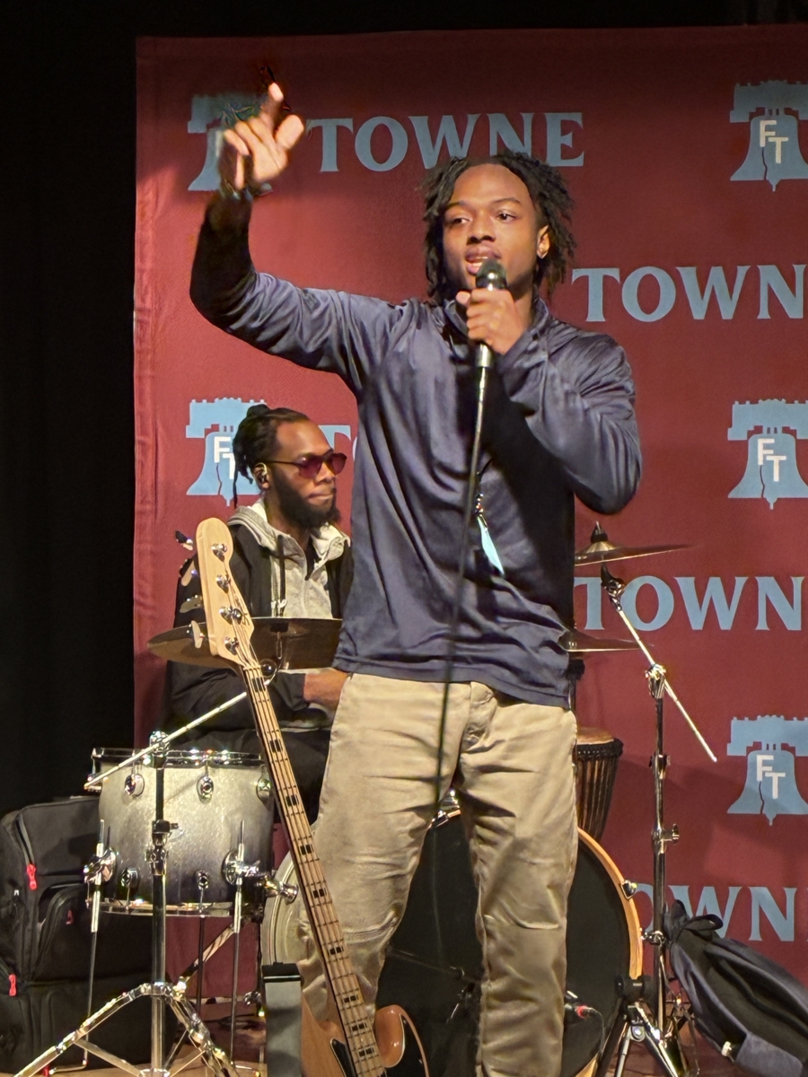 Some students also had a chance to perform. Tabitha Jackson timed the beat with the band, while Zeiden Ramos did a solo on the guitar. Qurazz Overton and Kevin Daughtry offered freestyle raps, while Joshua Thevenin sang Take Me to the King, originally performed by Tamela Mann.