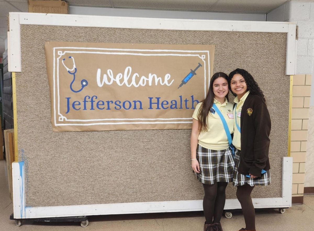 Karlen Baez-Perez (left) and Ana Karla Inacio were among a group of St. Hubert students who welcomed Jefferson Health to the school’s inaugural Healthcare Careers in 1-2-3 Symposium.