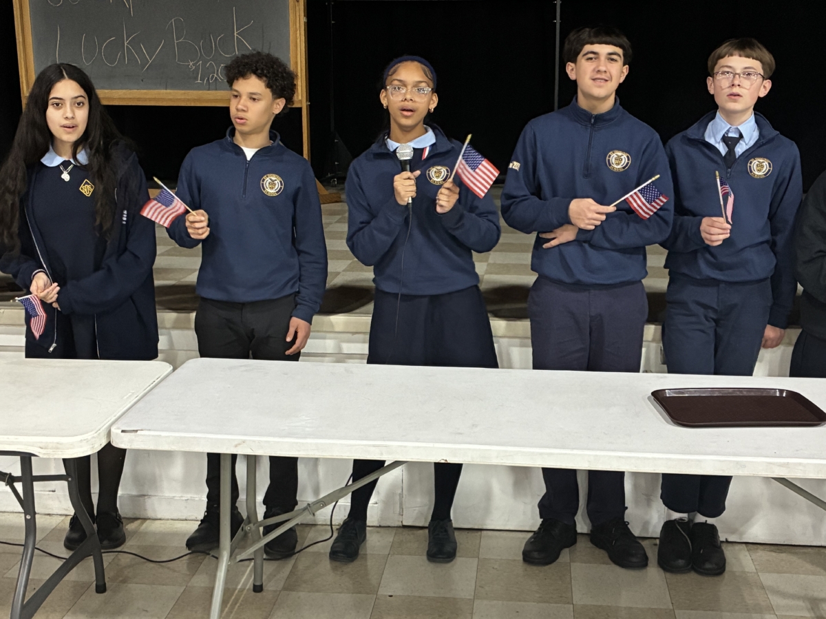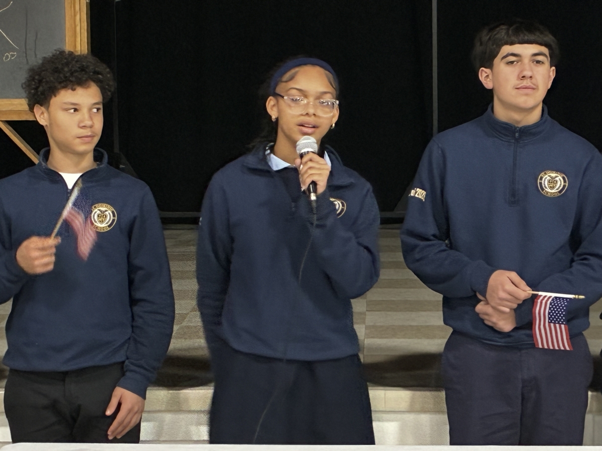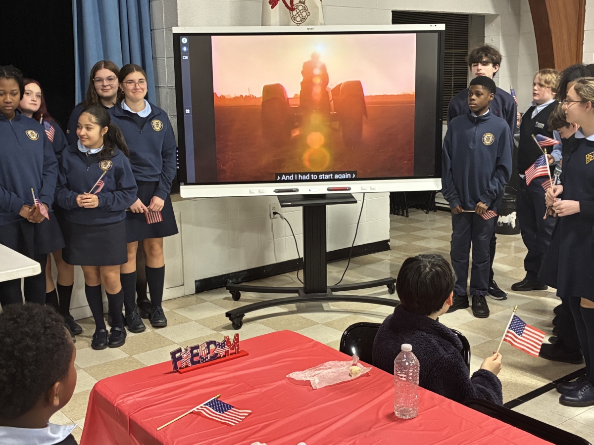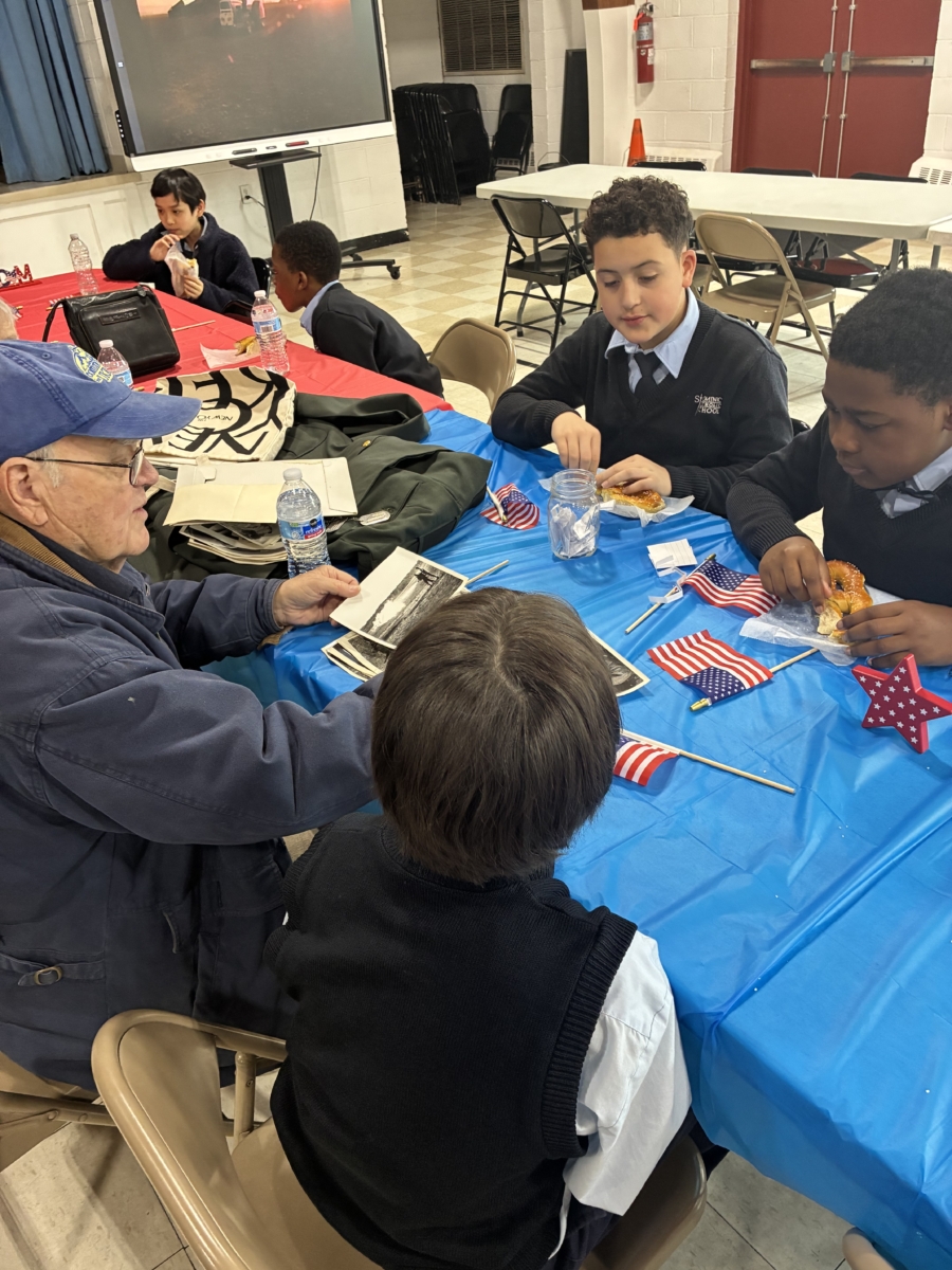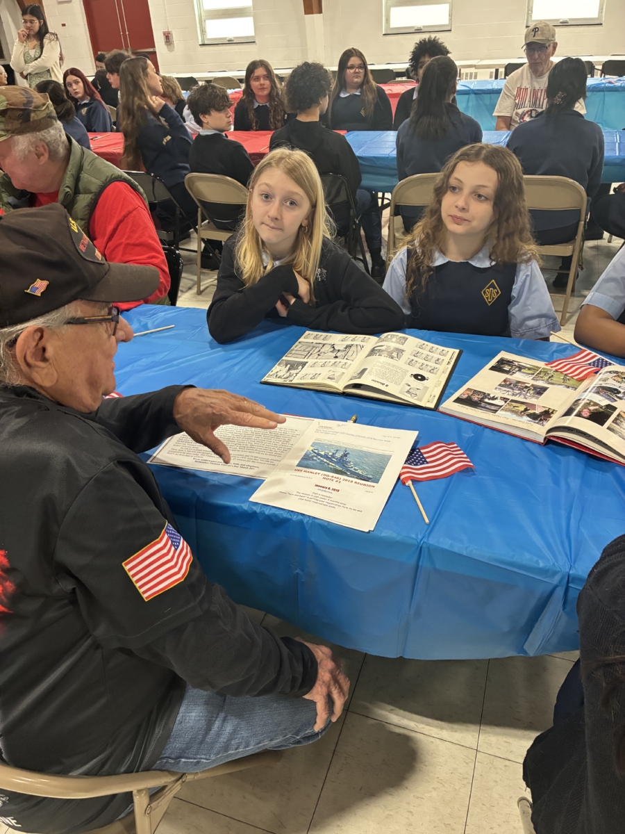 St. Dominic sixth-, seventh- and eighth-graders recently held a question-and-answer session with local veterans at Marian Hall.