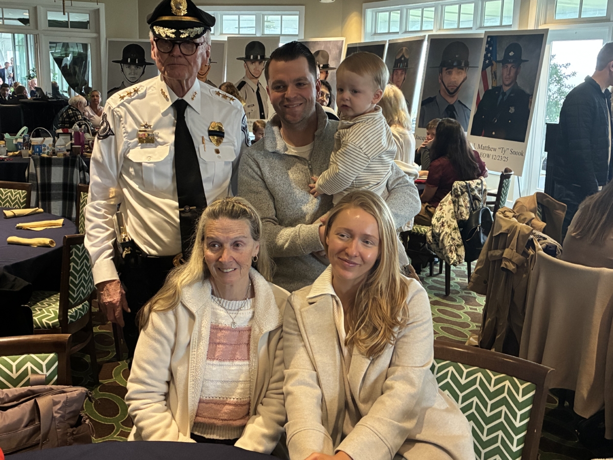 Jimmy Binns with the families of Officers James Walker and Robert Wilson and Firefighter Gabriel Lee