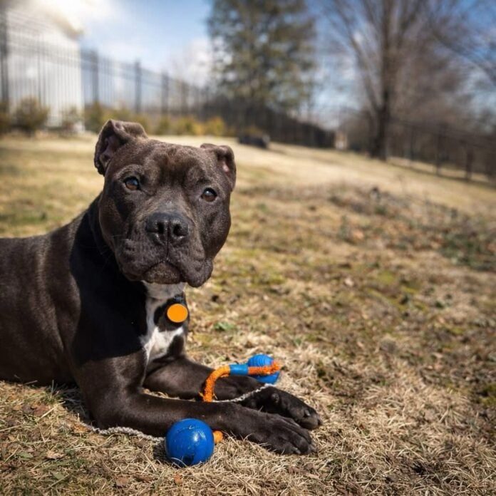 Cork is a 1- to 2-year-old pit bull who is big and goofy with the heart of a teddy bear.