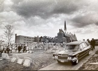 Hearses at St. Dominic Cemetery. Photo by Harry Sircely, Bucks County Courier Times (courtesy of Mary Ann Sircely)
