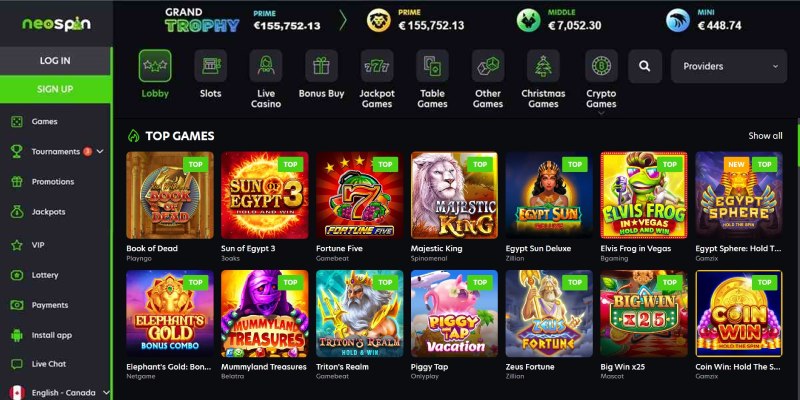 The best online casino in Canada is Neospin, which offers more than 5,500 games, a C$10,000 welcome bonus, and 100 free spins for new players.